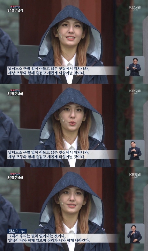 가수 전소미가 제102주년 3·1절 기념식에 참석해 독립 선언문을 낭독했다.