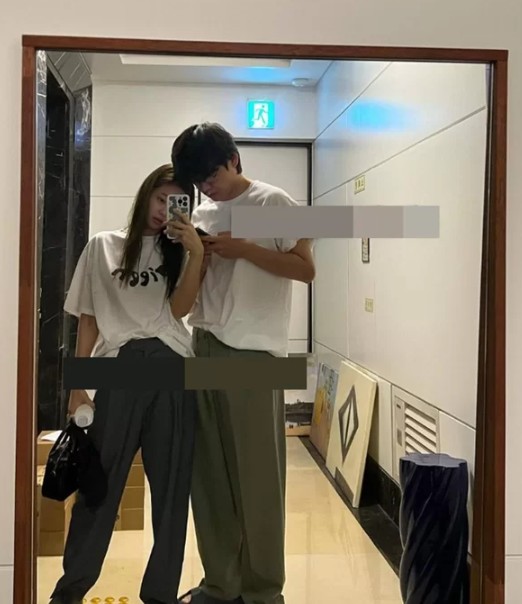 사진 속 공개 된 두 남녀는 누구의 집인지는 알수 없지만 아파트 복도로 보이는 곳으로 서로 거울을 보고 셀카를 찍고 있다. 눈에 띄는 점은 같은 시밀러룩으로 맞춰 입은 옷차림으로 커플룩을 연상케했다. 또한 사진속 남성은 자다일어난 듯한 부시시한 머리스타일에 여성은 샤워한 후 드라이를 한 것처럼 보였다.